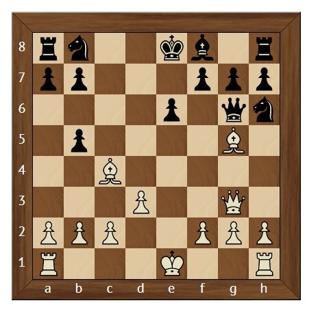 Задача на уровне второго разряда. Решение простое, но изящное. У черных лишний конь, но фигуры черных расположены неудачно. Конь, слон и ладьи еще не выведены и стоят на начальных позициях. А ферзь и второй конь - на углу доски. Но действовать нужно решительно, ведь за два-три хода черные могут мобилизовать все свои ресурсы на защиту. Итак, условие задачи: белые начинают и ставят мат в два хода. На размышление у вас две минуты. Ответ вы найдете под картинкой. Начинаем с жертвы ферзя - Фg3 : b8+! Дело в том, что черный конь на b8 был единственным толковым защитником. Например, если бы мы пошли Сc4 : b5+, то конь смог бы закрыть короля черных. Уничтожив последнего защитника мы очистим путь к королю. Черные могут принять жертву или уйти королем - это не важно, так как наш следующий ход будет... Сc4 : b5Х. Теперь это МАТ! Черные не могут перекрыться. Если бы черные съели ферзя - результат был бы тем же - наши слоны создали матовую сеть из которой черному королю уже не выбраться. Спасиб
