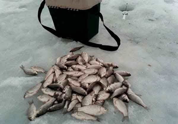 Несмотря на то, что карась не является типичной рыбой для зимней рыбалки как, к примеру, плотва, окунь или подлещик, ловить зимой его можно довольно успешно. В первую очередь это относится к небольшим слабопроточным водоёмам, в которых карась является если не единственным, то, по крайней мере, самым распространенным обитателем. Если объектом ловли будет исключительно карась, то выходить на рыбалку желательно в оттепель, так как с наступлением морозов малоактивный карась и вовсе перестаёт питаться. В южных регионах страны, где зимы мягче и период ледостава непродолжителен, его можно ловить в течении всей зимы. Место ловли карася Ловля карася зимой, как всегда начинается с выбора места. Глубокие участки водоёма в данный период перспективными не будут: если карась там и есть, то он малоактивный или даже не активный совсем. Кормящегося карася надо искать вдоль береговой линии на глубинах от одного до трех метров. Учитывая его непредсказуемость, определить по внешним признакам место его к