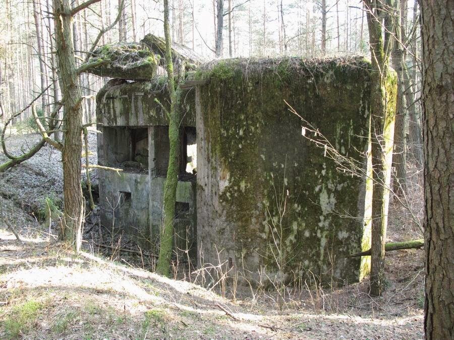 Но вернемся к нашим баранам. Свернув с трассы к деревне Саковичи я легко нашел и осмотрел все сооружения опорного пункта, оставив напоследок самое вкусное - двухэтажный артиллерийский полукапонир 029, расположенный у кладбища. Сквозь сосны легко заметить характерную груду бетона на месте подорванного сооружения.