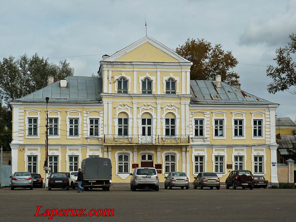 Изначально здание было построено как главный дом усадьбы купца И.Я. Кутафьева. После его разорения постройка была выкуплена новоторжскими властями. Они разместили в здании городскую думу, суд, ремесленную управу, народное училище, управление пожарного общества. В конце XVIII веке к западному флигелю пристроили жилой дом, в 1941 году восточный флигель был разрушен.