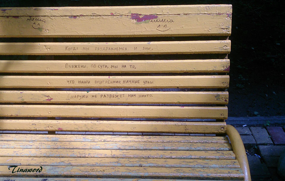 А вот мне сегодня на лавочке в славном городе Батайске встретилось стихотворение: