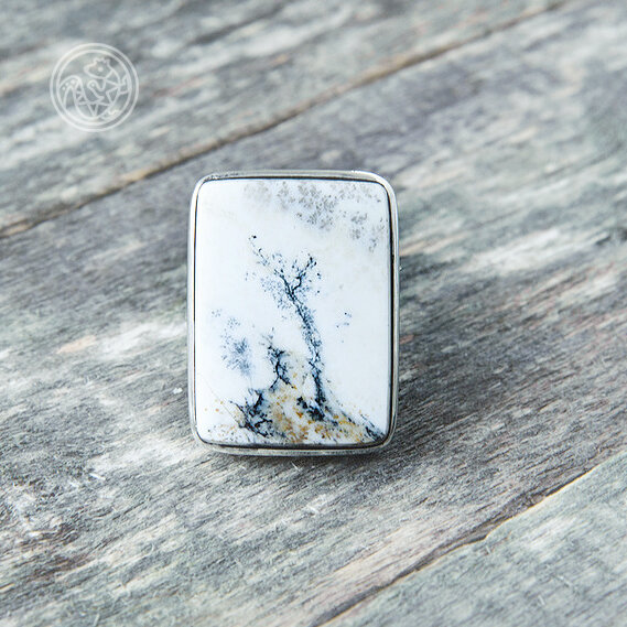 Этот камень из Казахстана, но рисунок в нем отсылает к красотам среднерусским, или даже к японской зиме. Силуэт дерева на снежном пейзаже обладает особым, спокойным очарованием безмолвия. Рисунок здесь образован дендритами марганца. По своей реалистичности он может соперничать со многими образцами пейзажного (или мохового) агата, признанного лидера среди картин, написанных кистью природы.