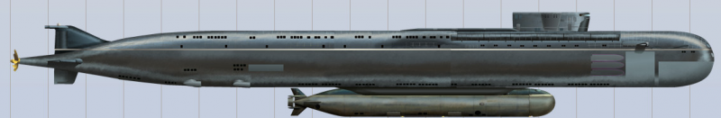 Вооружение: 6 торпед Статус-6, 2х650мм и 4х533м торпедных аппарата (28 торпед) (в этом имеет смысл усомниться, учитывая диаметр пусковых установок Статус-6 для обычных торпедных аппаратов в носу места не останется).