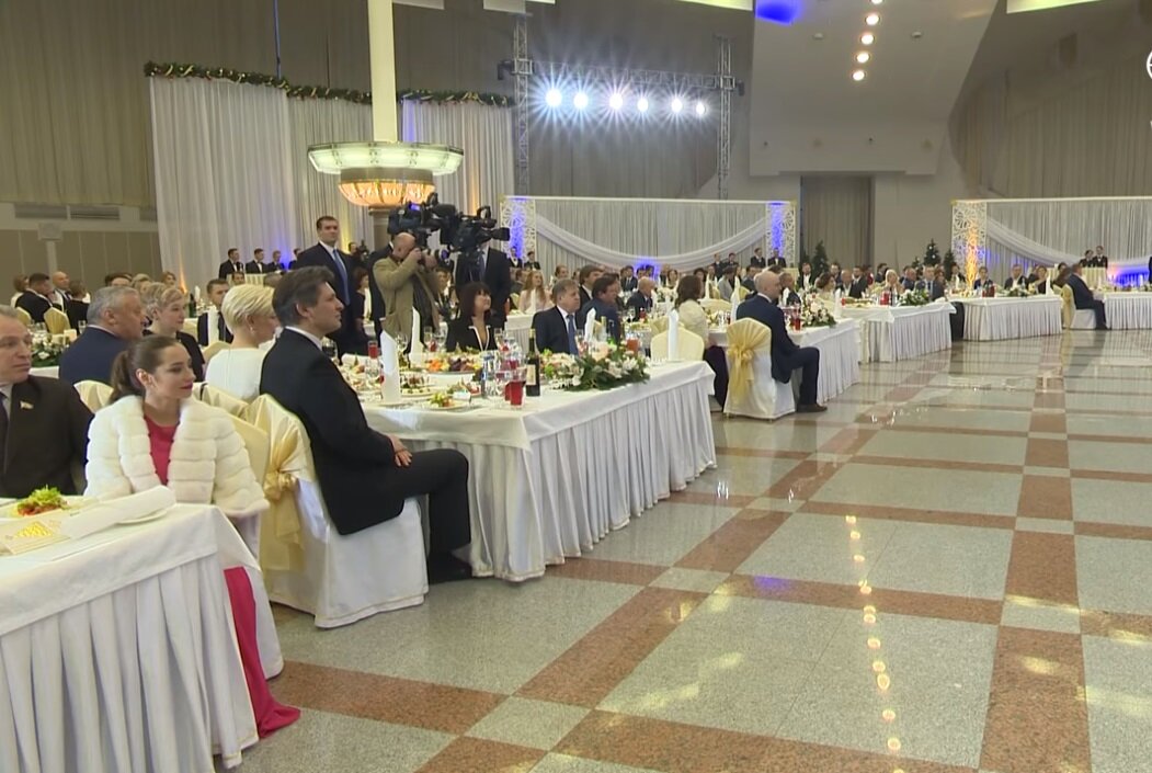 Всплыли подробности прошедшего 12 января в «БелЭкспо» приема на старый Новый год. Ранее сообщалось, что Александр Лукашенко пригласил на прием представителей СМИ и творческой интеллигенции. Там он выступил с речью, в которой заявил, что «жизнь у нас не великолепная и даже не хорошая. Пока мы живем терпимо». И наградил журналистов государственных медиа – в основном журналистов президентского пула. На видеокадрах из «БелЭкспо» можно было заметить накрытые столы и самых высоких чиновников страны: от Кобякова и Карпенко – до Ермошиной и Каллаура. Скриншот из видео БЕЛТА Но лишь несколько дней спустя выяснилось, что президентский прием не был скромными посиделками. В сети появились фотографии со звездами белорусской и российской эстрады. И если участие первых сильно смущать не должно, то приезд вторых провоцирует вопрос о том, во сколько обошелся концерт для небольшого круга. Согласно сайту концертного агентства «123 шоу» выступление Наташи Королевой и ее сопровождения стоит около 1