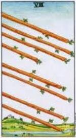 С сегодняшнего дня я начинаю показывать что для вашего знака выпадает по картам Таро. Давайте посмотрим что готовит среда для Льва. В Семёрке жезлов мы имели дело с оппозицией, а вот в Восьмёрке восемь жезлов, летящих по воздуху, отображают единство цели и отношения "на всех парах". В этой карте мы видим желание привести все в движение и свободный полет. Здесь или вновь возобновлены действия, или происходит что-то неожиданное, толчок, дающий стремительное движение вперед. Ускоренный процесс, реальный прогресс. Но карта содержит предупреждение: "Будь осторожен, не позволяй летающим предметам выйти из-под контроля". 8 жезлов указывает на сильную позицию, сосредоточение энергии. Планы приведены в действие, свободные концы соединены и прошлые проекты завершены. Покончите с состоянием "висеть в воздухе" и подведите черту. Обновите окрас и предварите в жизнь колдовскую силу, находящуюся в Вас! Если она выпала в раскладе, значит наступает благоприятный период, человеку необходимо принят