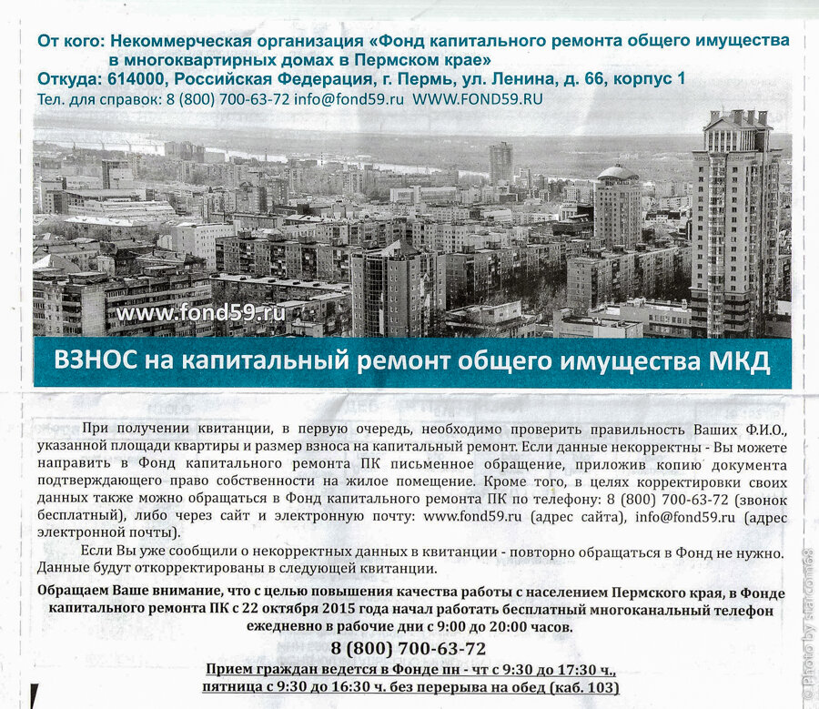 После того как обнаружил в своем почтовом ящике досудебную претензию от Некоммерческой организации "Фонд капитального ремонта общего имущества в многоквартирных домах в Пермском крае" вновь со всей очевидностью встал вопрос - надо или нет платить очередным жуликам? Ранее я исходил сугубо из положений Гражданского кодекса РФ (Ст. 123.17.), который говорит нам о том, что Фонд это дело сугубо добровольное: Фондом... признается унитарная некоммерческая организация, не имеющая членства, учрежденная гражданами и (или) юридическими лицами на основе добровольных имущественных взносов и преследующая благотворительные, культурные, образовательные или иные социальные, общественно полезные цели.