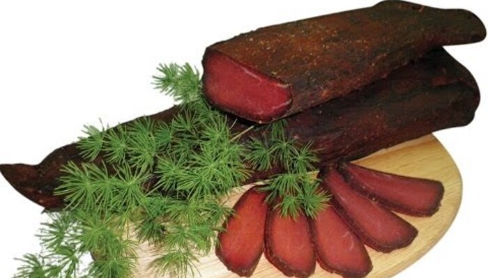 Сухое мясо обваливают в приготовленной смеси из пряностей и соли, разведя пряную смесь прохладной кипяченой водой (при желании воду можно заменить домашним красным вином) до консистенции сметаны, подвешивают ароматные куски мяса на 4 суток.