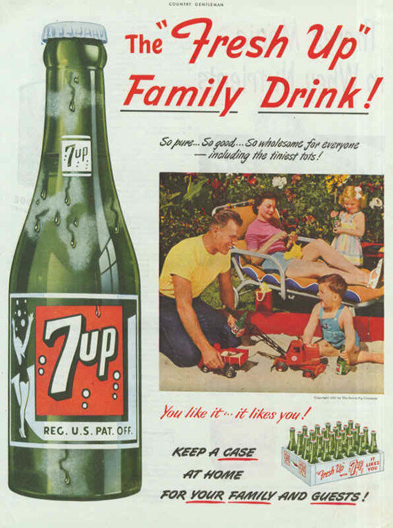 История популярных в наше время продуктов питания порой довольно необычна. Например, кто бы мог подумать, что в первые энергетические напитки добавляли радиоактивные элементы. Пожалуй, это именно тот случай, когда название «энергетический» полностью соответствует своему содержимому… А вот известный в наши дни каждому человеку напиток 7up изначально рекламировался как… средство от похмелья. Правда, и состав у 7up был в те времена совсем другим. Впервые представленный в 1929 году, этот напиток имел длинное название «Bib-label Lithiated Lemon-Lime Soda» и включал в свой состав цитрат лития. Цитрат лития является психотропным лекарственным средством и используется в качестве психиатрического лекарства для стабилизации настроения больного и лечения невротических расстройств. Часто препараты на основе лития назначаются при длительных депрессиях. При использовании цитрата лития было замечено, что в качестве побочных действий он может устранять еще и головную боль. Итак, поднятие настроения