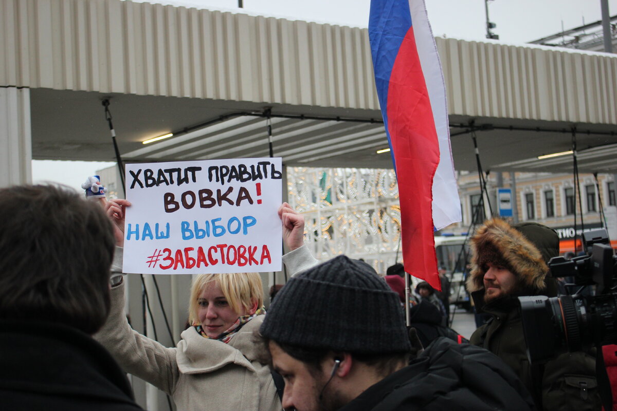 В Москве, 28 января, прошла акция «Забастовка избирателей», на которую вышло около 5000 человек. Люди требовали допустить Алексея Навального до президентских выборов, проведения честных выборов и т.д. Подобные акции прошли в 118 городах России, и так как во многих регионах власть отказалась согласовывать мероприятия, они обернулись задержаниями: полицейские скрутили как минимум 257 человек. В Москве задержали 16 человек, в том числе Алексея Навального, но к большинству участников акции правоохранители относились лояльно.