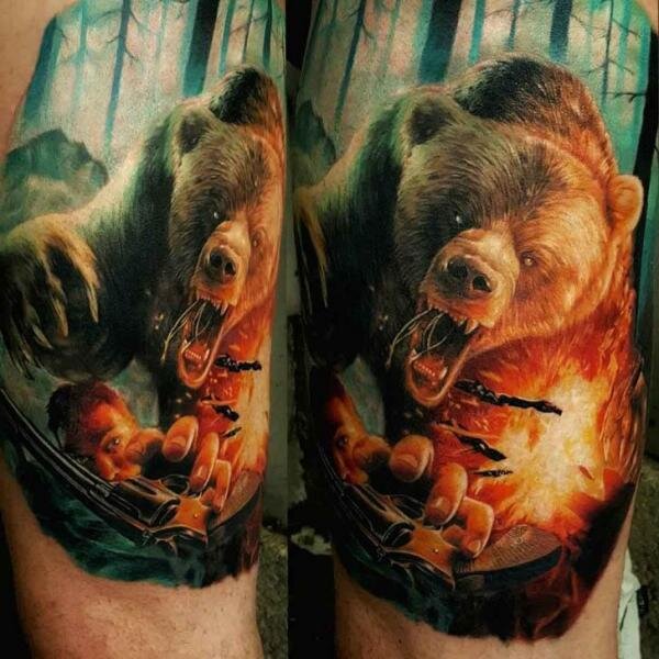 Святое во многих культурах животное, перебралось из лесной чащи и вторглось в культуру, благодаря фильмам, книгам, песням и, конечно же, татуировкам. Мы собрали несколько интересных фактов о смысле и значении тату медведя. Культ медведя возник, наверное, раньше всех остальных - его доисторическое происхождение связано с жизнью разных племен, которые жили охотой и рыбалкой. Самые древние финны считали лесного гиганта реинкарнацией духа своих предков, называя медведя KARHU. Этот зверь и во многих других культурах является символом закона и возмездия, который также символизирует первозданную мощь. Наследство коренных американцев Племена американских индейцев относились к медведям с особым трепетом. Сиу поэтически называли зверя "Ухо Земли", утверждая, что память индейцев при помощи медведя возвращается к истокам. Пуэблос зажигали костры в честь этого животного, а шаманы племени носили медвежьи шкуры, полагая, что они обладают целебными свойствами. Семинолы готовили особую смесь из зубов