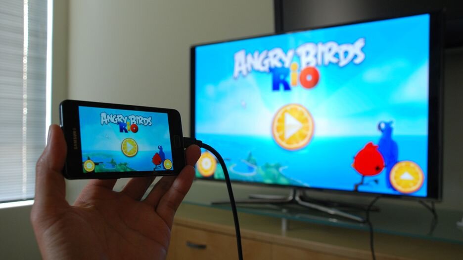 Фотографии и видеоролики, а также фильмы и презентации, сохранённые на смартфоне, гораздо лучше смотреть на большом экране. Существует несколько способов подключения смартфона к телевизору о которых мы и расскажем. При помощи HDMI Данный способ будет уместен лишь в том случае, если у телефона есть HDMI разъем. В век технологий его наличие в ТВ – привычное дело. Можно посмотреть инструкцию и проверить расположение этого выхода. Обычно он расположен рядом с разъёмом USB. У ТВ же он располагается на задней панели или сбоку. Для подключения оба аппарата нужно выключить. Затем необходимо соединить их при помощи кабеля HDMI. После этого телефон и телевизор можно включить. Вероятнее всего, соединение произойдёт автоматически: всё, что будет на дисплее смартфона, перенесётся на экран телевизора. Если же установить автоматическое подключение не удалось, нужно действовать так: в меню телевизора, которое можно легко вызвать при помощи пульта, следует выбрать «HDMI» в списке возможных источников