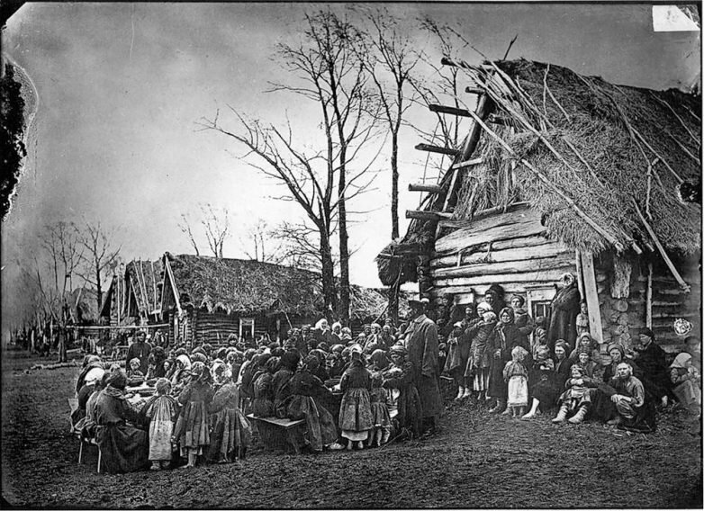 3. Раздача хлеба в ссуду крестьянам в городе Княгинине. 1891-1892 гг. Негатив 18 × 24 см.