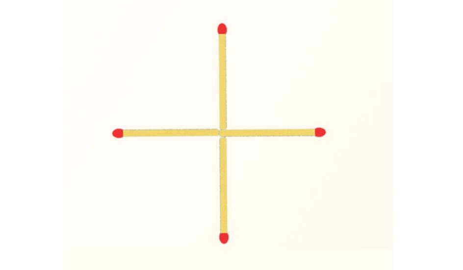Предлагаем вашему вниманию интересную головоломку, которая позволит проверить способности к логическому мышлению. Отнеситесь к испытанию серьезно, так как оно реально оценит ваши способности и покажет результаты. На картинке ниже есть 4 спички, которые выложены в форме знака плюс. Задача состоит в том, чтобы сделать из них квадрат.