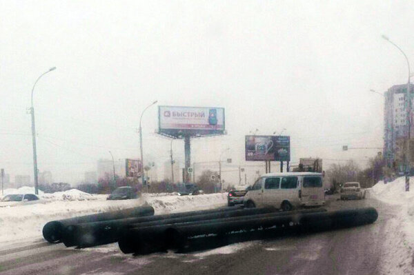 На одной из самых оживленных улиц Новосибирска из кузова грузовика несколько труб выпали на проезжую часть. В результате образовалась пробка. Инцидент произошел днем 18 января на ул. Ипподромской, неподалёку от пересечения с ул. Военной. «На Ипподромской в сторону Фрунзе скопилась большая пробка, которая берёт начало от улицы Сибревкома», — написали очевидцы происшествия в паблике «АСТ-54» и выложили фото действа. Одна из труб упала на автомобиль Toyota Premio и повредила его, сообщили очевидцы. В ГУ МВД по Новосибирской области уточняют, что к настоящему времени трубы уже отодвинули, на данном участке инспекторы ДПС осуществляют ручное регулирование дорожного движения. Фото: «АСТ-54»