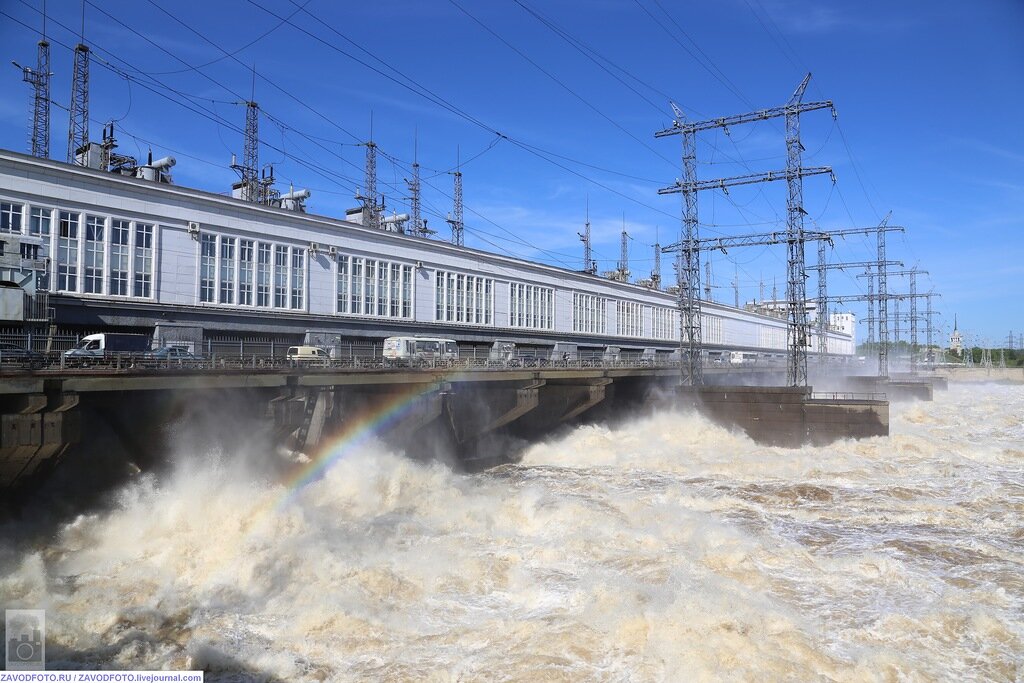Многие из нас сейчас, проезжая по плотине Камской ГЭС, хотели бы остановиться хотя бы на чуть-чуть и понаблюдать за этой красотой. На воду, как известно, можно смотреть вечно, а тут такое - холостой водосброс. Понимая это, пресс-служба нашей ГЭС в очередной раз проявила нужную лояльность и открытость и пригласила блогеров к себе в гости. Скажу сразу, я на Камской ГЭС уже был и писал о ней http://zavodfoto.livejournal.com/1534318.html, да и наших "Почемучек" сюда привозил http://zavodfoto.livejournal.com/1794024.html, но тем не менее от такого приглашения устоять так же не смог и Вам снова предлагаю прогуляться по нашей местной энергокрасавице: Как известно, каждая ГЭС уникальна по-своему. Особенностью нашей является то, что здание ГЭС совмещено с водосливной плотиной. По мощности наша, конечно, не энергогигант (Установленная мощность - 537 МВт, Среднегодовая выработка - 1 700 млн кВт·ч), но и маленькой не назовешь :) Уже знакомая галерея ГЭС. Первым делом, конечно, идём на инстру