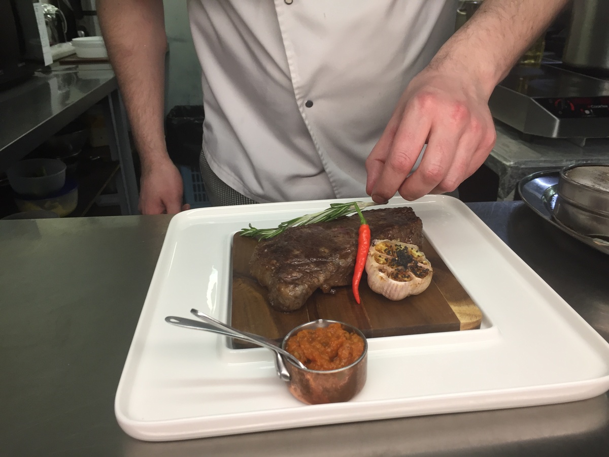 Почему "стриплойн" - слово переводится как плоская вырезка, стейк делается из тонкого края. Волокна крупные, но мягкие, правильно вырезанный стейк имеет также тонкую полоску жира, которая придает ему сочность. Хотя считается, что стриплойн изобретение британское - второе его название "Нью-Йорк", якобы здесь его стали подавать впервые для тех кто следит за фигурой. Стриплойн можно считать стейком для ценителей мяса.