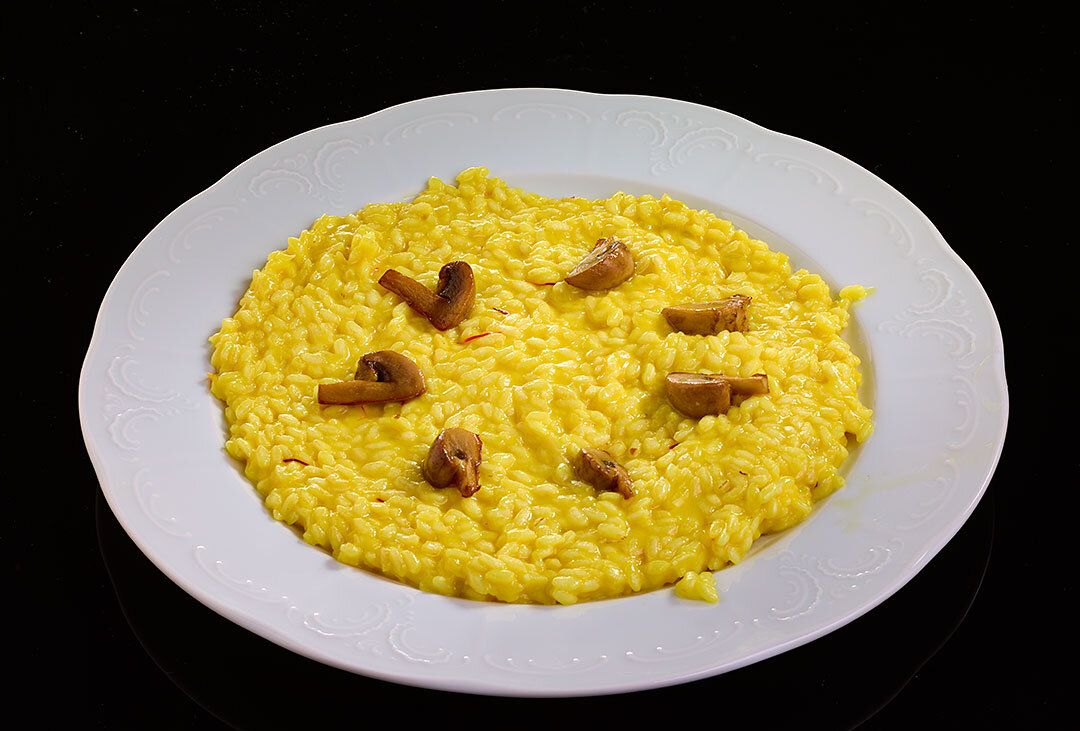 Вся задача повара состоит в выборе хороших продуктов, которые всего лишь надо не испортить. Слева направо, сверху вниз, примерно на 6 порций, если подавать ризотто в качестве закуски, или на 4, если подавать его в качестве основного блюда.