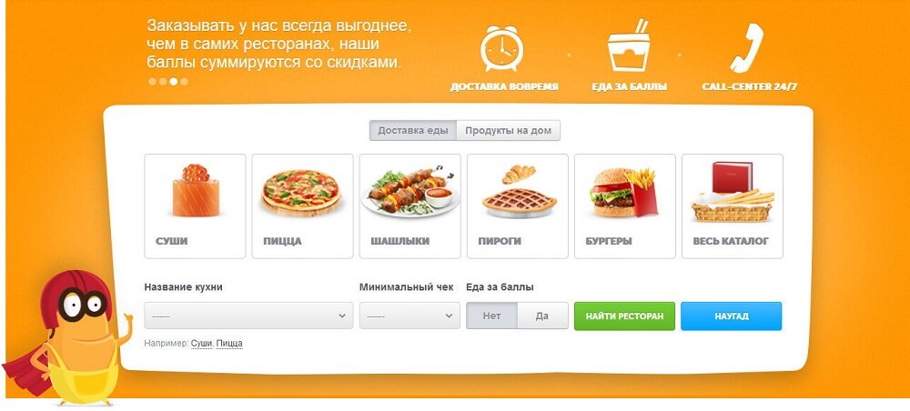 - По особенностям кухни (через каталог категорий еды).