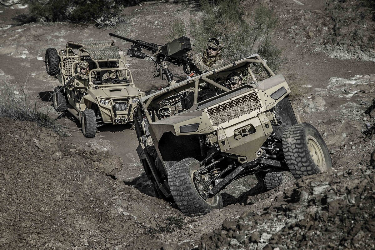 В предыдущем материале я рассказал о легкой армейской технике Polaris Defense, выросшей из гражданских моделей. Скорее всего, заключенные контракты воодушевили американцев и они решили сделать ход конем, представив легкий внедорожник DAGOR. По армейским меркам, DAGOR это сравнительно легкий внедорожник, занимающий промежуточную позицию между мотовездеходами MRZR и бронемашинами типа Humvee. Турбодизельный DAGOR способен перевозить до девяти бойцов с полной экипировкой: четверо в салоне, пулеметчик и еще четверо на опциональных местах в кузове. Размеры рамы позволяют разместить на крыше турель с пулеметом Browning M2. Снаряженная масса DAGOR – 2041 кг. Грузоподъемность – 1472+ кг. Заявленная автономность – до 500 миль (800 км.). Рассказывая о подвеске этого внедорожника, в Polaris особо подчеркивают, что при её создании инженеры вдохновлялись конструкцией подвески гоночных трофи-траков. Разумеется, с поправкой на армейскую специфику. При габаритах (ДхШхВ) равных 452x188x184 см., DA