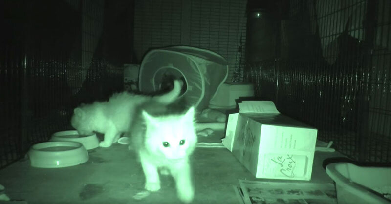 Что любопытно, при этом котята абсолютно не любили спать. Когда Крис ложился ночью в постель, он слышал, как маленькие братья и сестры играют друг с другом. Мужчина решил посмотреть, что же делают котята и установил в клетку камеру. Полученные кадры получились восхитительными. Котята по ночам прыгали друг на друга и просто всячески шумели. При этом одна кошка в углу выглядела не такой бодрой и умудрялась даже сквозь шум немного подремать. Надеюсь, что Крис в дальнейшем научил котят хорошо спать. Посмотрите видео ниже, чтобы насладиться восхитительными кадрами.