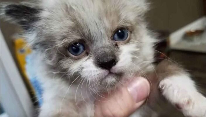 Молодой человек подождал некоторое время, но мама-кошка не вернулась, чтобы забрать своего ребенка, поэтому он решил взять крошечного котенка к себе домой.
