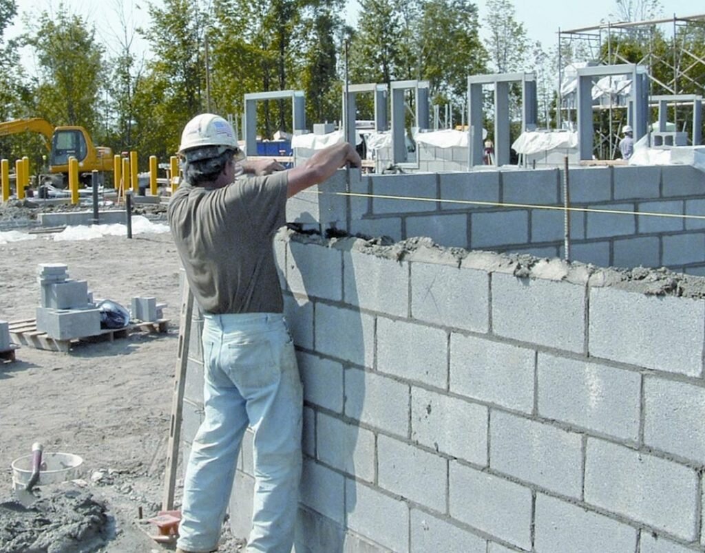 Для кладки нам понадобится карандаш, уголок, мастерок, уровень, шнурка — в качестве шнурки желательно использовать толстую цветную леску, но можно обойтись и капроновой ниткой, маленькая кувалдочка или молоток, пластиковая бутылка с отверстиями в крышке, чтобы поливать, если это необходимо, пыльный шлакоблок и чуть застывший раствор.