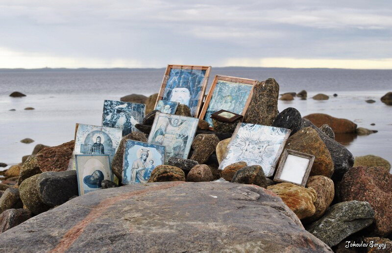 Ходя по острову наткнулся на отшельника. Живет в лесу, молится на берегу моря. На монаха не очень похож, скорее на богородичника...