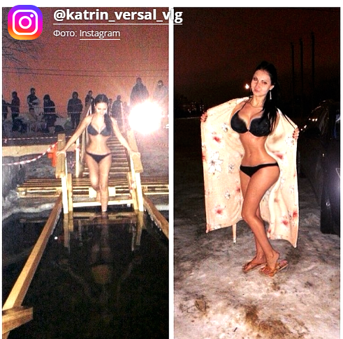 Девушки позируют у проруби в красивом белье что бы залить фоточки в Instagram