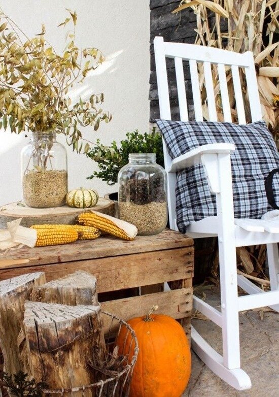 Осенний декор для открытой веранды загородного дома