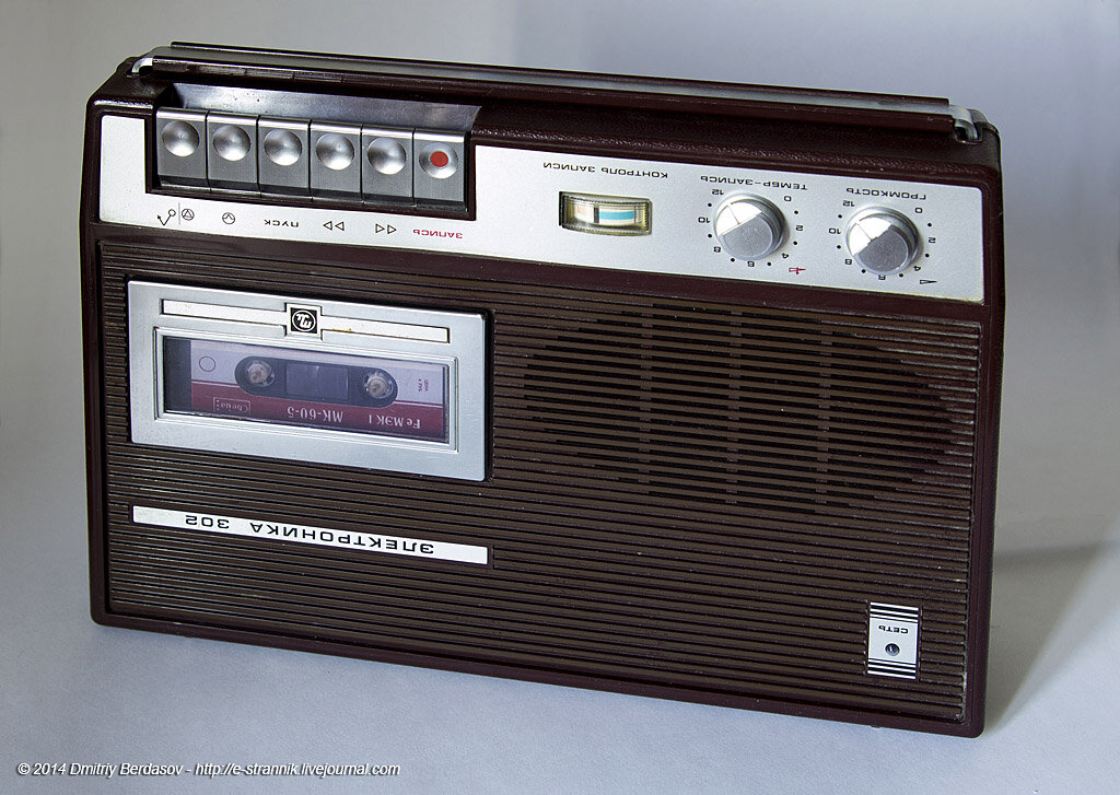 Как-то возвращаясь вечером домой и зайдя в подъезд, я был немного удивлен. В фойе стояли уникальные, для сегодняшнего дня, вещи. 2 магнитофона "Электроника 302" в идеальном состоянии, куча новых аудиокассет МК-60 советского производства, провода, переходники и другие интересные вещи как советского, так и японского производства. Многое было даже запечатанное. Я не отличаюсь страстью к собирательству, но взяв дома большую сумку я все же спустился на 1-й этаж. Вы не представляете, как я хотел подобное чудо в начале 80-х. Магнитофон ''Электроника-302'' предназначен для записи и воспроизведения звука на магнитную ленту шириной 3,81 мм помещенную в кассету МК-60. Кассеты стоили 4 рубля и были 2-х вариантов, разборные и склеенные. Экономия в СССР была на всем. Конечно, можно было использовать и кассеты С-90 и даже С-120, если была возможность их достать. Данная модель была разработана на базе унифицированной модели ''Электроника-301'' отличаясь от неё применением новой динамической головки 1