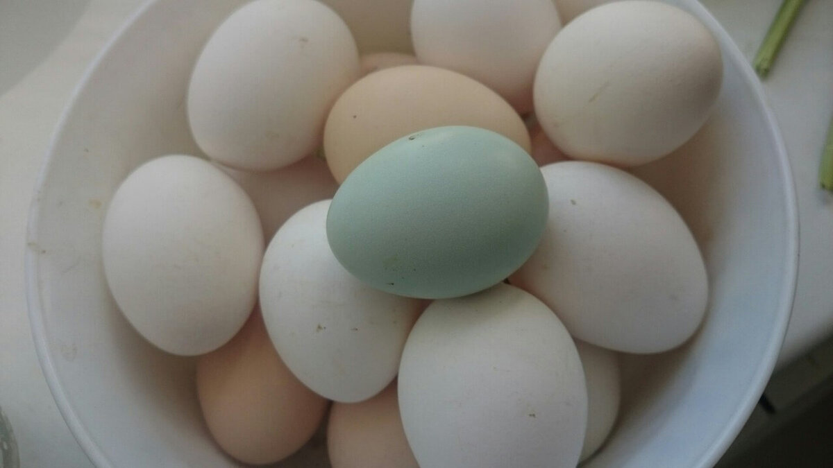 Голубые или бирюзовые цветные яйца несут куры многих пород, например, Араукана, завезенная к нам из Чили. И порода Легбар дает цвет скорлупы бледно голубой.