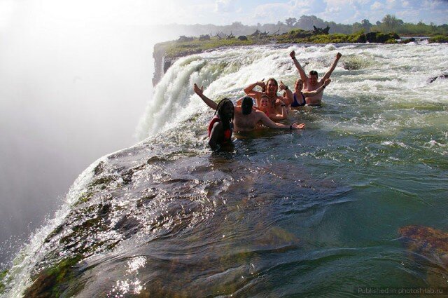 В мире огромное количество любителей экстрима, все они находятся в постоянном поиске более необычных и манящих развлечений. И одно из них находится на водопаде Виктория, это, так называемый, бассейн дьявола. Сюда не каждый рискнет взобраться, это действительно для тех, у кого крепкие нервы. Все дело в том, что этот бассейн находится у самого обрыва водопада, вы буквально оказываетесь в этом потоке и можете лично наблюдать за тем, как с огромной высоты вода стекает вниз. Насколько это безопасно и стоит ли вообще туда ехать, разберем в сегодняшней статье. Не для слабонервных Путешествие к водопаду Виктория само по себе не самое безопасное мероприятие. Во время такой экскурсии может случиться большое количество неприятностей. Но для тех, кто все же рискнул и поднялся на самый верх, подготовлен еще один сюрприз. На самом краю обрыва водопада Виктория располагается бассейн, который неспроста назван «Дьявольским». У людей, рискнувших в него погрузиться, появляется возможность побывать
