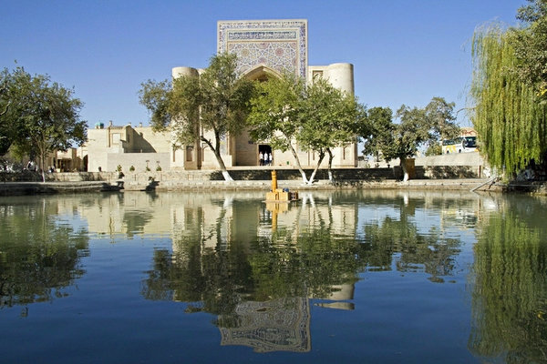Старая Бухара славилась обильностью торговых площадей. Самая известная из них –Ляби хауз, построенная в 17 веке. И до наших дней она дожила. Вы спросите, почему у нее такое название? Да это потому что в центре площади располагается гигантский бассейн, имеющий длину около 42 м, ширину 36 м, и глубину более 5 м. Этот бассейн был построен в 1620 году. На сегодняшний день бассейн наполнен водой и его можно занести в памятники Бухары. Один из самых красивых памятников Узбекистана. В 20 годы чудом хауз избегает осушение, которое было проделано с остальными хаузами Бухары, рассматривающихся как источники инфекций и заболеваний. Спасла хауз высокая художественная ценность прилегающего к нему ансамбля. Как выяснилось позже установили памятник Ходже Насреддину. Но потом все-таки хауз был осушен и после ВОВ архитектура Бухары была переделана под спортивную арену: проводили соревнования по борьбе, волейболу и др. В советское время очень близко к хаузу