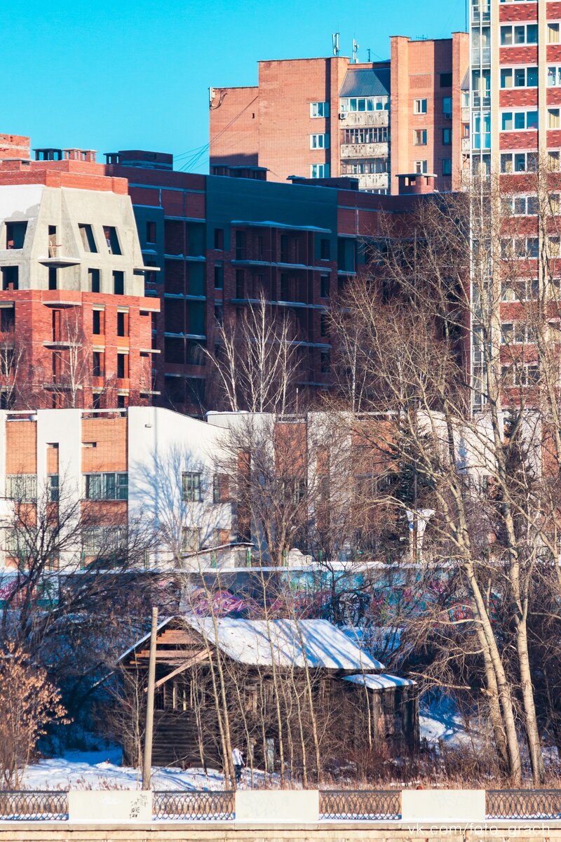 На фото видны старый дом, дом Пионеров, строящийся Ривьера-парк и высотки на перекрестке Кирова-Горького.