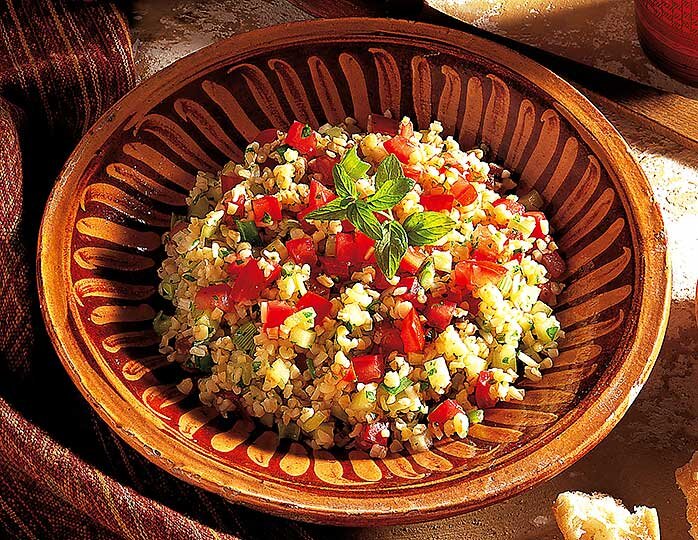Полба - это крупа из полбяной пшеницы, некогда очень популярная на Руси Помните, у Пушкина, как Балда обращался к попу? «Буду служить тебе славно, усердно и очень исправно, в год за три щелка тебе по лбу, есть же мне давай вареную полбу». На 3 порции/по 315 ккал. Надо: 1 — 1,5 стакана полбы · 1 крупный помидор · 1 огурец · 0,5 головки красного лука · 1 лимон · 5 — 7 веточек кинзы · 2 ч. ложки горчицы · 2 — 3 ст. ложки оливкового масла · соль. Готовим: 1 Полбу промываем. Перекладываем в кастрюлю, заливаем 2 стаканами воды. Солим. Доводим до кипения, варим, помешивая, около 35 минут до готовности. Откидываем на дуршлаг. Промываем холодной водой. 2 Огурцы моем. Очищаем от кожуры, режем кубиками. Помидоры моем, удаляем плодоножку, измельчаем. Кинзу мелко рубим. Половину луковицы без кожуры режем полукольцами или мельче. 3 Горчицу соединяем с оливковым маслом. Лимон моем, натираем цедру, выжимаем сок из половинки. Добавляем лимонный сок (регулируйте количество по вкусу) и треть чайной лож