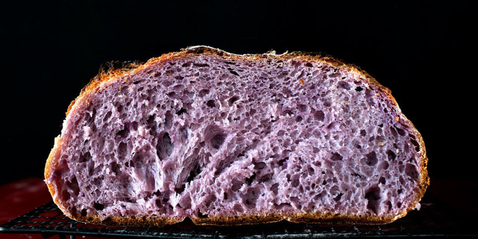 Довольно необычную цветовую гамму данного продукта можно объяснить наличием в нем большого количества антоцианина – специального ингредиента, который присутствует в рисе бурого цвета, чернике и иных плодах с ярким фиолетовым цветом. Ученые утверждают, что употребление в пищу хлеба с большим содержанием антоцианина, положительно воздействует на организм и здоровье человека, вплоть до замедления процессов старения. При взаимодействии с крахмалами, данный ингредиент делает продукт более легким для усвоения и он не оседает «камнем» в желудке, а в дальнейшем и на талии.