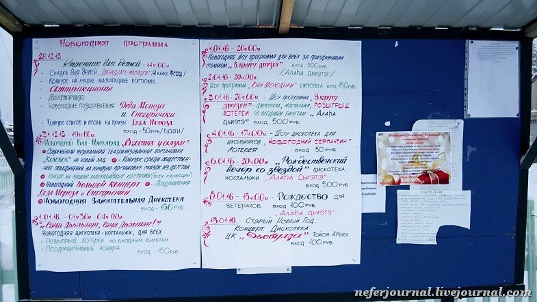 Ездили на трех машинах. На заглавной фотографии наша первая остановка. Просто в этом населенном пункте был магазин. Не знаю, как называется поселок, но предполагаю, что это был Хатассы. Около домика администрации висит вот такая афиша. Ностальжи :)