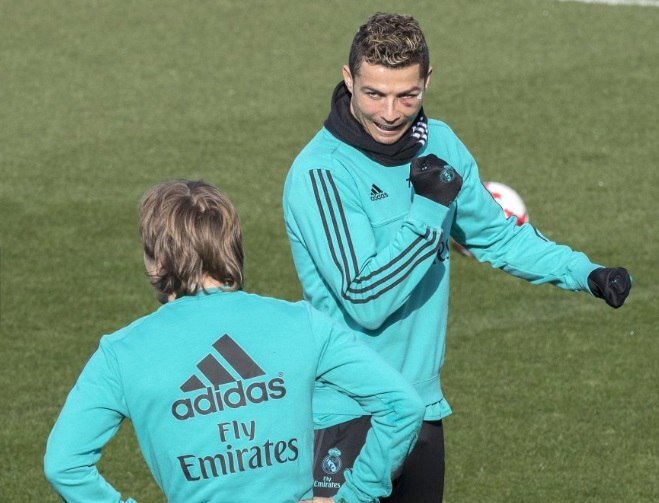 Криштиану с бодпитым глазом на сегодняшней тренировке