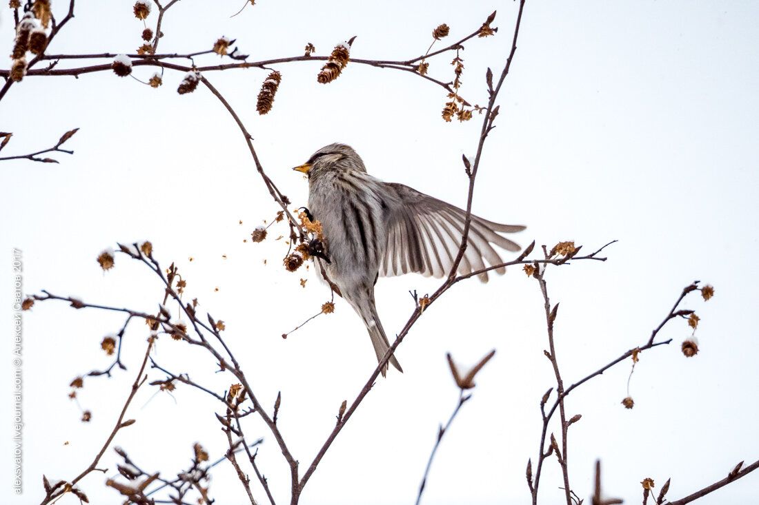 На месте птицы не сидят, быстро разбираются с одной серёжкой и тут же переключаются на другую.