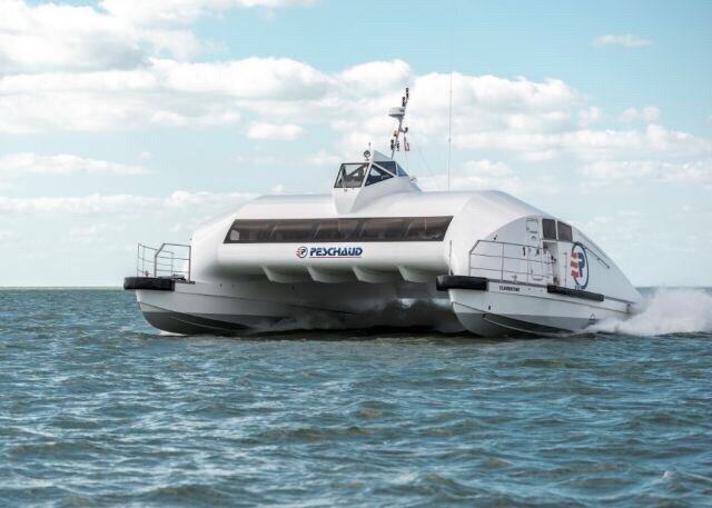 Этот новаторского дизайна катер был разработан французским судостроителем Advanced Aerodynamic Vessels (AAV) и основан на корпусе катамарана в форме гигантского крыла аэродинамического профиля для создания подъемной силы , которая обеспечивает высокую производительность.