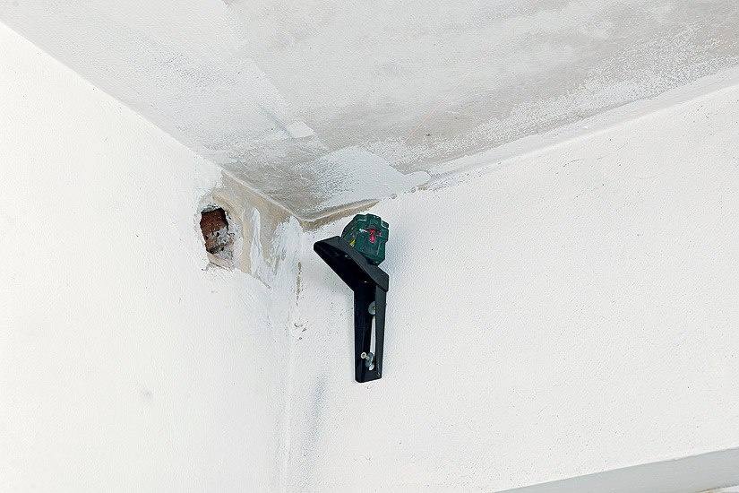 1. Монтажную высоту размечают на стенах с помощью линейного лазера