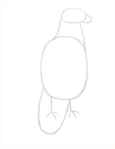Орел — грациозная и очень опасная птица. По размерам она больше, чем привычный для нас голубь или ворона. Некоторые виды дорастают до таких размеров, что спокойно могут поднять и улететь с маленьким ребенком. Итак, берем принадлежности для рисования и приступаем :) Первым шагом в сторону реалистичности у нас будет изображение совсем не реалистичного наброска. Не сильно нажимайте на карандаш, так как это лишь вспомогательные контуры, которые будут в дальнейшем детализированы. Рисуем клюв и глаз. Для более опасного вида линию над глазом проведем немного под углом, как мы это делаем с бровями, когда рисуем злого человека. Покрываем перьями как на рисунке. Работаем над ногами. Теперь прорисовываем крылья. Хвост и ветка. Теперь мы подошли к последнему и самому сложному шагу — это накладывание светотени карандашом. Взгляните на рисунок ниже и постарайтесь так же заштриховать своего орла.