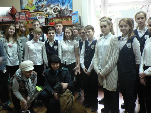 22 января в детской библиотеки им А.П.Гайдара состоялось открытие месячника военно-патриотической работы под девизом: «Овеяна славой родная Кубань». По традиции месячник военно-патриотической работы открывают ветераны Великой Отечественной войны. И вот, на этот раз, гостем библиотеки была представитель Совета ветеранов М. К. Войтенко, чье детство прошло на оккупированной Украине. В своём взволнованном рассказе она призвала ребят всегда помнить и чтить подвиги защитников нашей Родины. Также в гости к ребятам пришла и представитель наших доблестных пограничных войск А.В.Колесник со служебной собакой по кличке Штефа. Анна Витальевна рассказала о том , как сейчас проходит воинская служба на рубежах России, а «лучший друг человека» показала выполнение обученных команд. Из рассказа библиотекаря дети узнали о подвигах героев-кубанцев, отдавших свои жизни за Родину, о героях Туапсинской оборонительной операции (1942 г.) и героях, именами которых названы улицы города воинской славы Ту