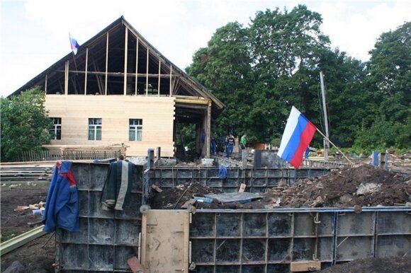 Как видите, на территории монастыря, гастарбайтеры, которым, как и руководству Института плевать на нашу историю (они её, в принципе, и не знают), строят гостиницу. Не смотря на многочисленные протесты местных жителей и неравнодушных ученых.