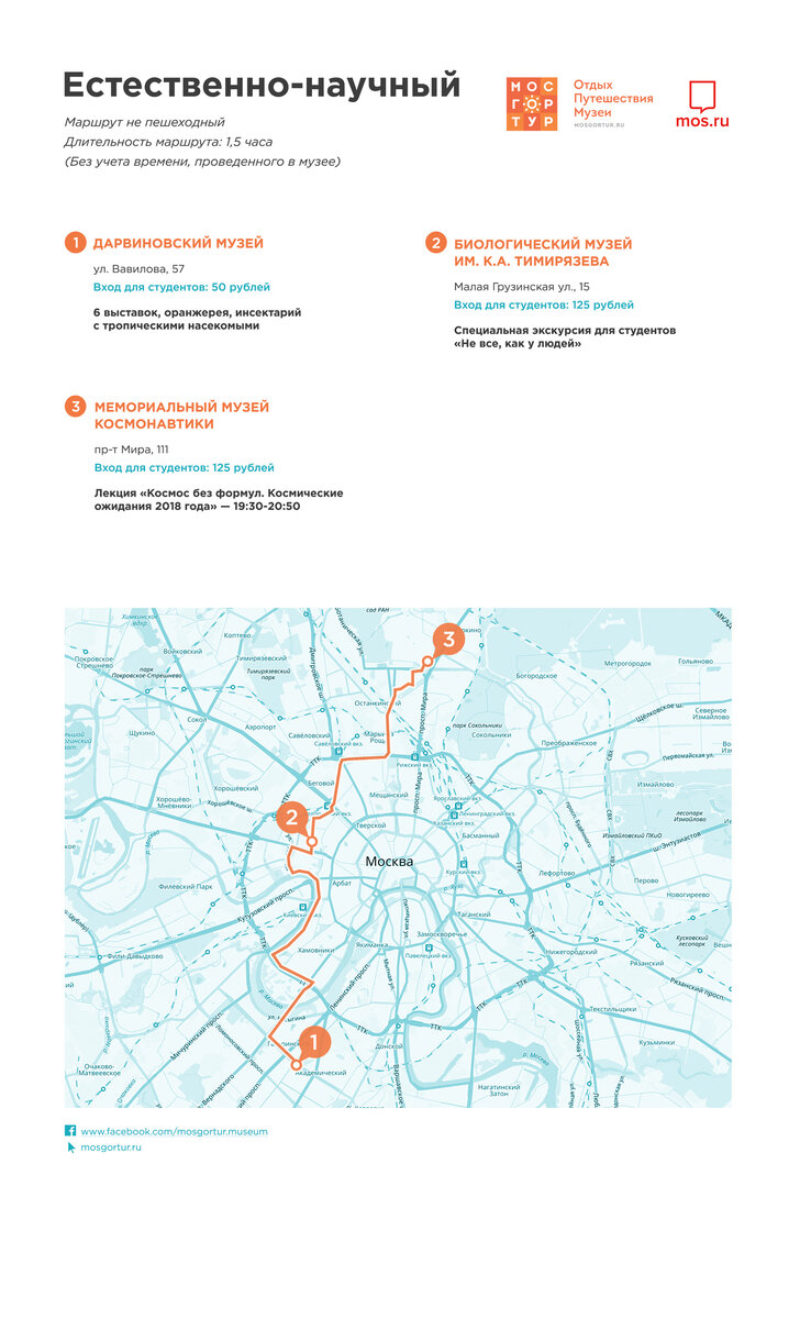 МОСГОРТУР совместно с Mos.ru подготовил для всех студентов подарок – музейную карту. Здесь есть маршруты для студентов факультетов естественных наук (физика, биология, астрономия), будущих историков и филологов, а также для дизайнеров, художников и искусствоведов!