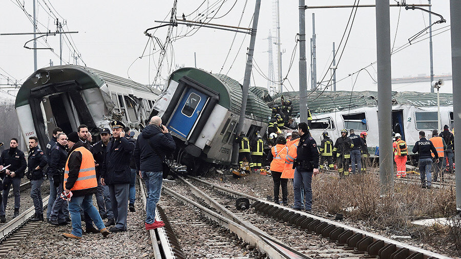 По меньшей мере 3 человека были убиты, а десятки получили ранения после того, как пригородный поезд спустился за пределы Милана, Италия, сообщают местные СМИ. Пригородный поезд, который перевозил людей в район Милана Порта Гарибальди, сорвался в среду примерно в 7 утра по местному времени между станциями Тревильо и Сегьяно ди Пиолтелло, сообщает RAI . Власти подтвердили, что пассажиры были убиты, а десятки получили ранения. Пожарные и полицейские работают вокруг сгоняющих поезда в Пиолтелло, на окраине Милана, Италия, 25 января 2018 года © Reuters Позже в тот же день агентство, представляющее Министерство внутренних дел в Милане, сообщило Reuters, что авария оставила трех пассажиров мертвыми и пять получили тяжелые ранения. В газете La Repubblica сообщалось о сильном присутствии машин скорой помощи на месте крушения, а больница в соседнем городе Монца приостановила все хирургические операции, чтобы подготовиться к прибытию потенциально большого числа раненых пассажиров. Trenord, же