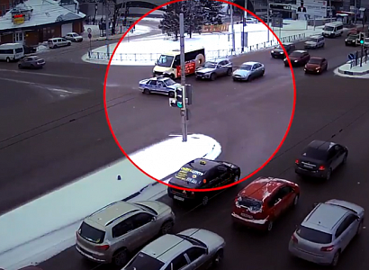 Автомобиль ДПС попал в ДТП на пересечении Московского шоссе и улицы Мервинской в Рязани. Видео момента столкновения опубликовано на YouTube. Как видно за записи, полицейский автомобиль двигался со включенными проблесковыми маячками. Был ли включен звуковой сигнал, из видео неясно. Официальной информации о происшествии на данный момент не поступало.