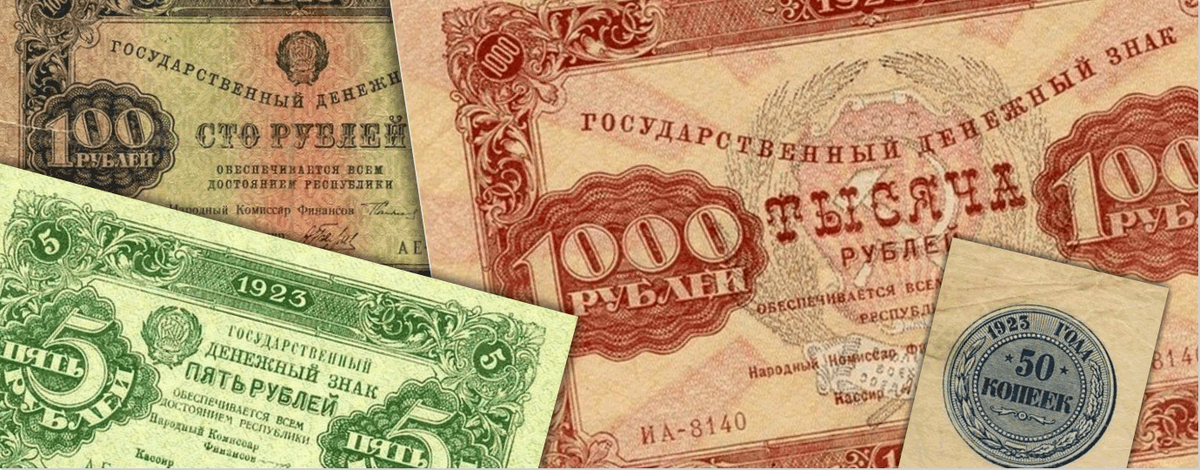 В 1923 году проходит второй этап деноминации, начавшийся в 1922 году. Банкноты образца 1922 года обменивались по курсу 100 старых рублей за один новый, либо 1 миллион уже изъятых банкнот (выпусков до 1922 года) на один новый. По-прежнему продолжают ходить банкноты всех выпусков, с учётом коэффициентов, но доля старых денежных знаков стремительно снижается. Самой неоднозначной банкнотой стали 50 копеек - она напоминала деньги-марки образца 1922 года и представлял из себя двусторонний монетовидный оттиск на квадратном обрезке бумаги с водяными знаками. Изначально предполагалось расширить ассортимент копеечных банкнот, и включить такие, как 5, 10 и 20 копеек. Но это сочли излишеством и решили отказаться от этой идеи и использовать деньги-марки предыдущего выпуска рублёвых номиналов в виде копеек. Также в обращение поступают банкноты в 1, 5, 10, 25, 50, 100, 250, 500 и 1 000 рублей. К концу 1923 года в обращение выпускают банкноту номиналом в 5 000 рублей. На обороте всех новых банкнот от