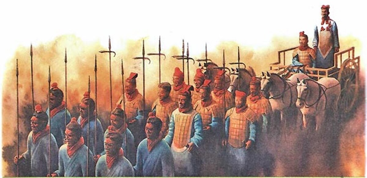Во время войны между тремя царствами в Китае в 207-265 годах великий полководец Чуко ЛАн, стоявший во главе армии царства Шу, разместил свои многочисленные войска в отдаленном лагере, а сам с немногими солдатами расположился на отдых в небольшом городке. Вдруг прибежали часовые с тревожной вестью о том, что приближаются вражеские силы — 150-тысячное войско под командованием Сыма Ю. При Чуко Лане было не больше сотни солдат, ситуация казалась безнадежной. Враги вот-вот должны были захватить знаменитого воина.