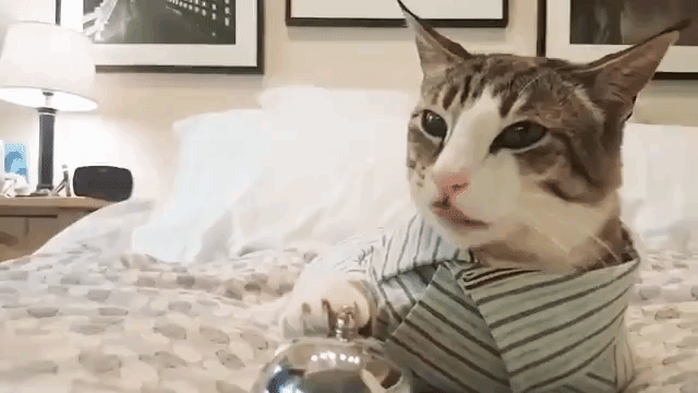 Ваша килька, сэр! Кот звонит в колокольчик, и ему приносят завтрак